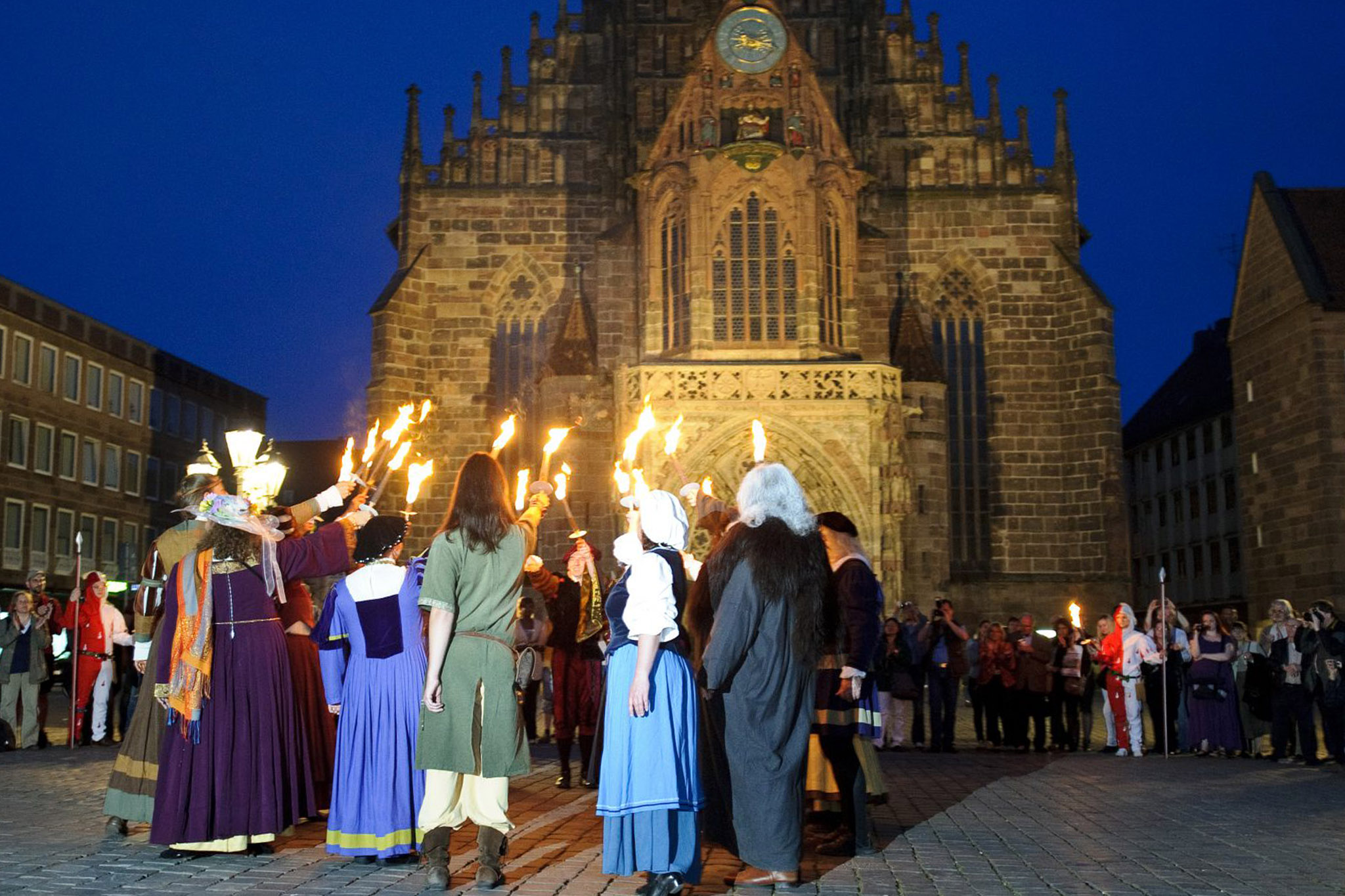 Im März zu Laetare findet das Winteraustreiben statt. Wir verjagen die kalte Jahreszeit! Vor dem historischen Dürerhaus siegt der Frühling über den Winter und wir alle ziehen dann zusammen zum Hauptmarkt hinunter, wo wir feierlich die Strohpuppe verbrennen.